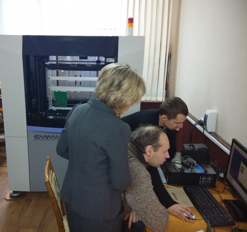 - кантроль цэласнасці дарожак, кантактных пляцовак і пераходных адтулін, а таксама праверка супраціваў ізаляцыі паміж ланцугамі друкаваных платаў на ўстаноўцы EMMA E4L6151 (MicroCraft, Японія).